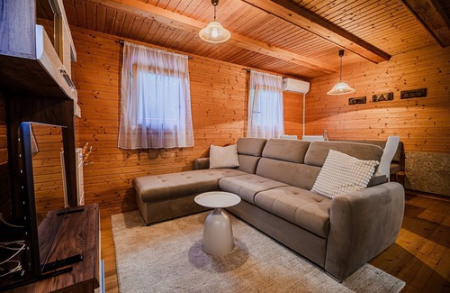 Escape to nature at Log Cabin Vista View with Hot Tub, a charming retreat tucked away in the hills of Bizeljsko. Surrounded by rolling vineyards and countryside, this cozy wooden cabin offers rustic charm and comfort. Step out onto the terrace and sink into the warmth of the outdoor hot tub—perfect for unwinding after a day of exploring. Whether you're sipping wine, enjoying a romantic escape, or simply relaxing in nature, this peaceful retreat invites you to slow down and recharge.